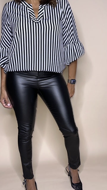 This Striped V- Top brings structure to your wardrobe with a relaxed fit and with drop sleeves that make this top be dressed up for any occasion.